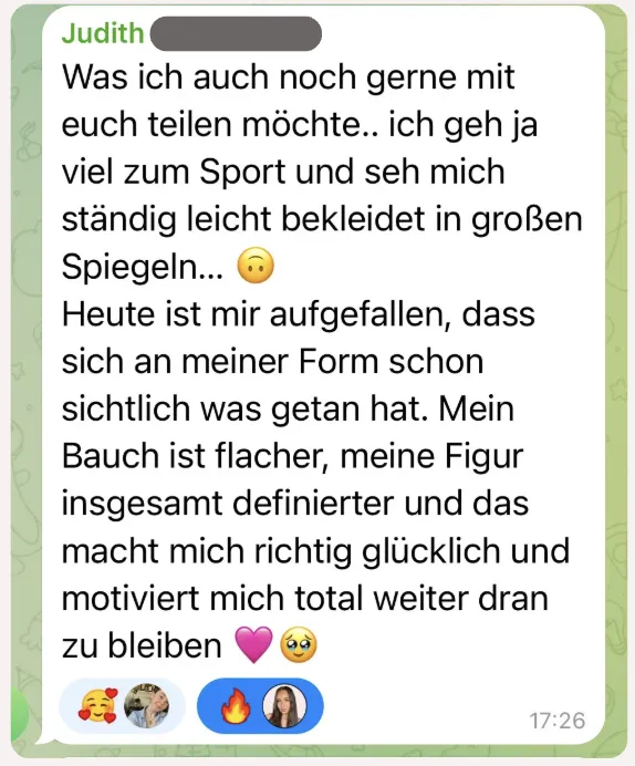 Die Nachricht einer überglücklichen Kundin. Ihr Bauch ist flacher und die Figur definierter: