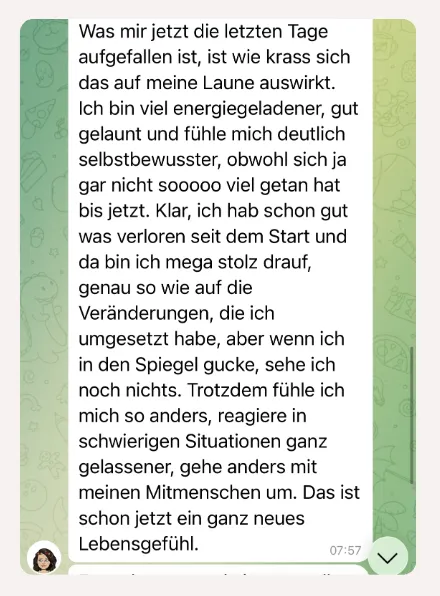 Feedback von unserer Teilnehmerin Tina nach nur 2 Wochen im Coaching: